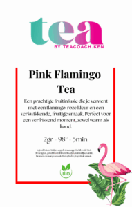 Ingrediënten: Hibiscus bloemblaadjes, appelstukken, rozenbottelschil, sinaasappelschil, gojibessen, roze peperkorrels, citroenverbena, gevriesdroogde rode bessen-perzik -veenbessen en roze korenbloem blaadjes